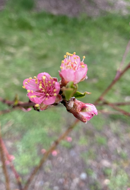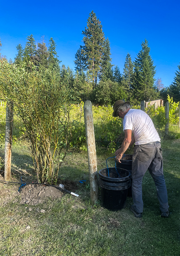 During this waiting time, we have planted the new peach trees. The blueberries are in the ground. This new work will produce fruit in the next seasons. Here is a photo of Farmer Dan with just one of our new blueberries. These plants are astonishing. We are excited about our new peaches and blueberries. There are 90 new peach trees and many blueberries.