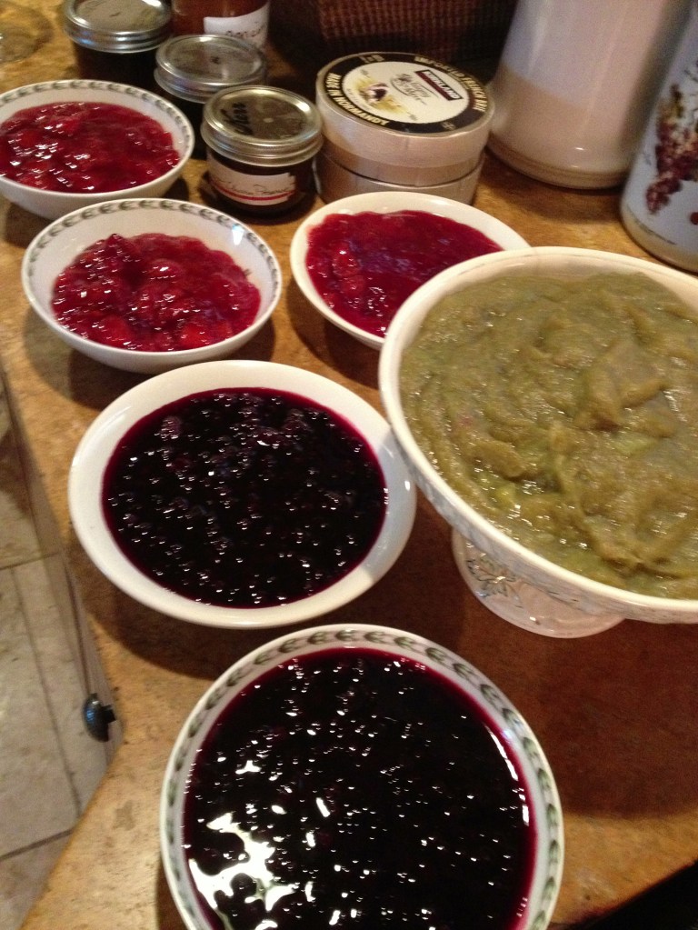 Typically we have Sweet Cherry, Peach, Tart Cherry, Concord grape, Currant, Aga Roasted Applesauce, Blackberry, Blueberry, Plum, Raspberry, Pear with ginger , Peach Pineapple, and others.