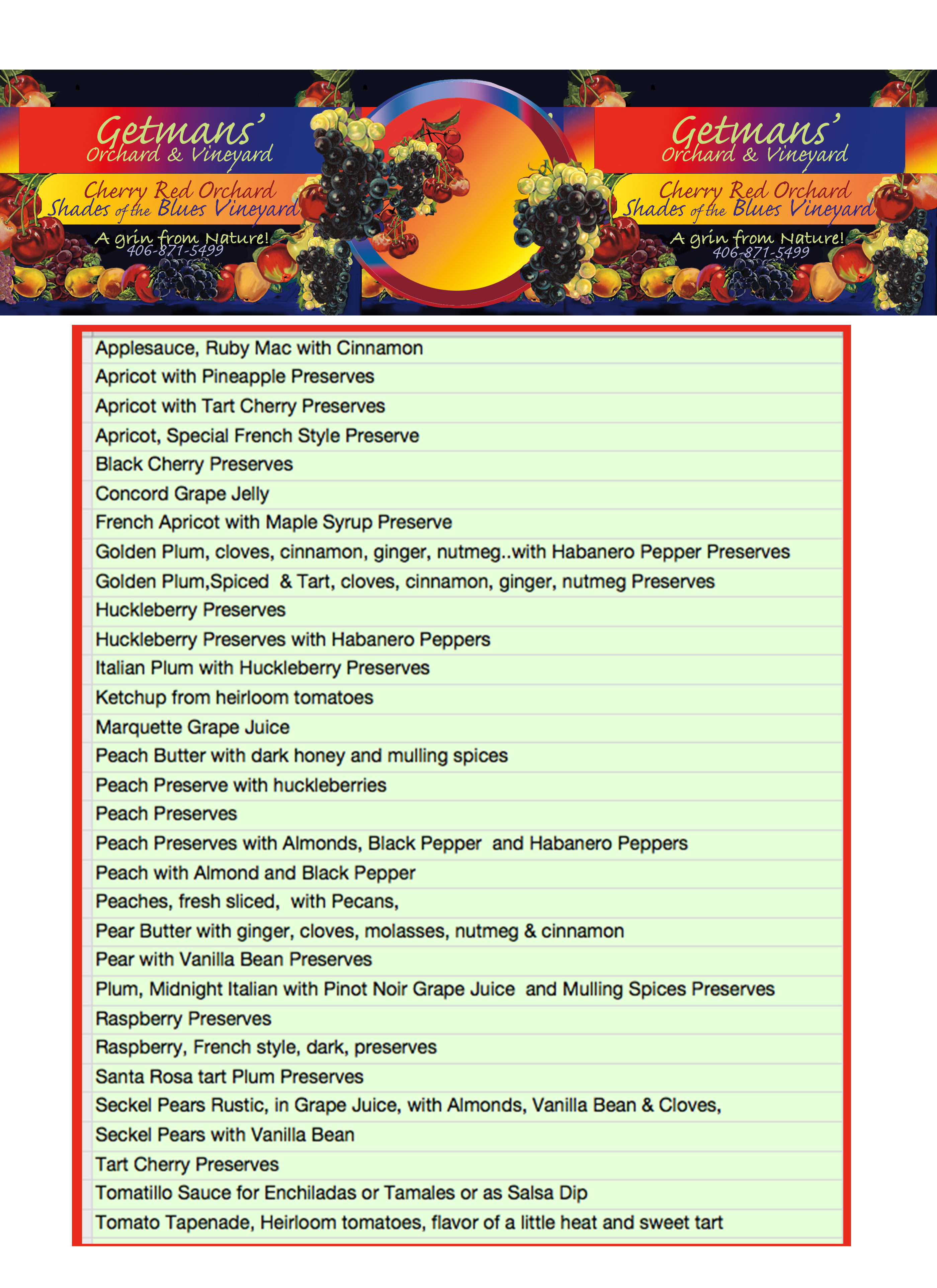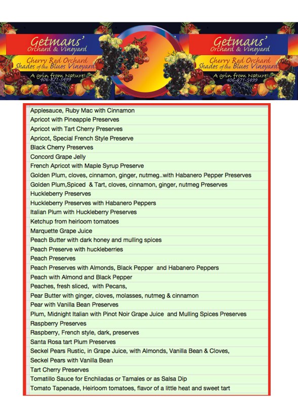 The preserve list on July 21, 2014. This list will grow and change during this harvest season. As fruit ripens, preserves are added.